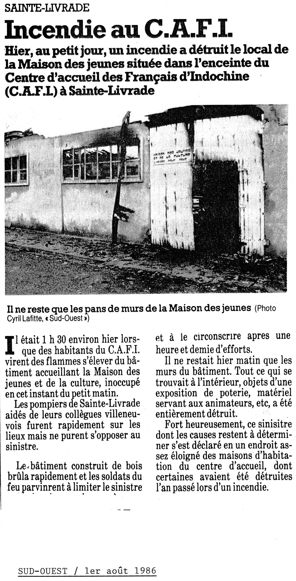 A Sainte-Livrade, qu'est-ce que dire adieu à l'ancien CAFI ? C'est accepter qu'une page se tourne en prenant acte de la destruction des vieilles baraques qui ont laissé place à de splendides pavillons relevant du logement social. Il ne reste plus rien de l'ancien CAFI hormis les quatre bâtiments préservés en vue d'un projet mémoriel. Pour certains, la réhabilitation est arrivée trop tard alors que pour d'autres, elle arrive presque trop tôt. Beaucoup apprécient d'avoir enfin des conditions d'habitat décentes, voire confortables. Cependant, les plus anciens ne voulaient pas quitter leurs baraques car c'est là qu'ils s'étaient trouvé des racines.