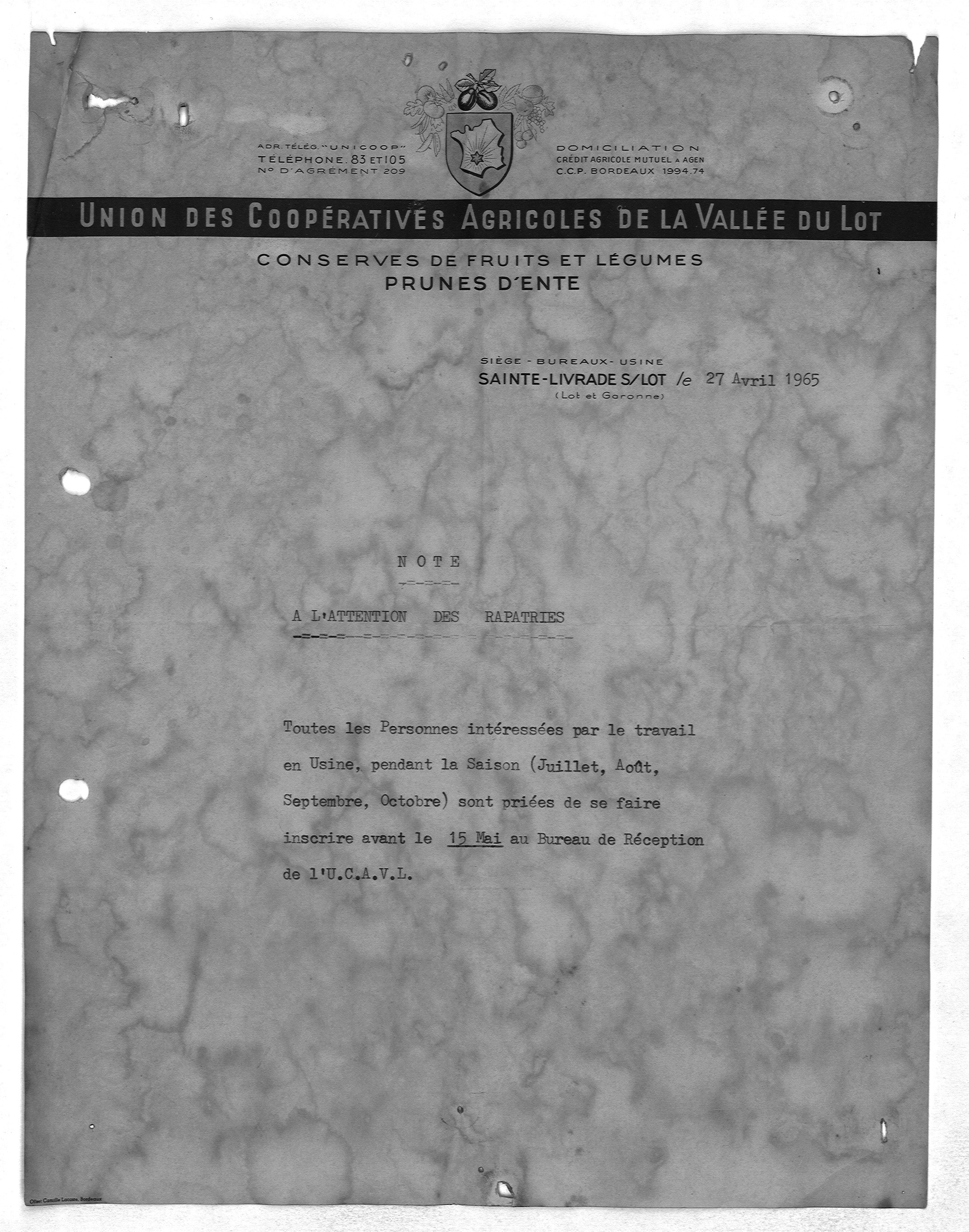 Et l’on note des pratiques de cloisonnement dans le travail à partir du critère ethnique. Les exploitants agricoles, par exemple, ne faisaient pas travailler dans le même espace les femmes du camp de Bias (occupé par les Harkis) et celles de Sainte-Livrade. De la même manière, il ne semble pas qu’elles aient travaillé avec des saisonniers français. Une Eurasienne, adolescente dans les années 1970 se souvient : « J’avais commencé à travailler dans les champs, à 14-15 ans. On travaillait entre nous, que les jeunes du camp et ma mère ou d’autres mamies. Il n’y avait que l’agriculteur. On n’était pas en contact avec d’autres Français. Ma mère dit qu’à l’époque les Français ne travaillaient pas comme nous… ». Ce cloisonnement ne se limitait pas aux travaux des champs. A l’usine de chaussures du CAFI, d’anciens ouvriers évoquent la répartition dans deux ateliers distincts des résidents du CAFI et des employés des environs. Certains évoquent même des cadences et rémunérations différentes.