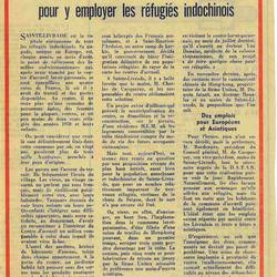 Si à certains moments, les rapatriés d’Indochine ont fait l’objet de représentations négatives, il ne semble pas y avoir eu d’attitudes de rejet dans le cadre du travail. Sans moyen de transport, ils n’eurent d’autre choix d’insertion économique que les activités locales, dans des emplois éloignés de leurs occupations antérieures. La déqualification fut particulièrement importante, surtout pour les hommes. Petits fonctionnaires coloniaux dans la police ou militaires dans l’armée française au Vietnam ils ne retrouvèrent pas ce statut en France, tel cet ancien policier devenu ouvrier dans une entreprise de cagettes pour fruits et légumes. Les rapatriées refusèrent quant à elles tout emploi de « gens de maison ».