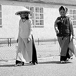 En effet, « en ville », les habitants ont découvert, derrière des patronymes pourtant bien familiers (Cazes, Claverie, Jouhandeau, Merlet, Fernand, etc.) des Français aux visages et à l’allure bien différents de ce qu’ils imaginaient. Ils ne s’attendaient pas à voir arriver des femmes en tenues traditionnelles : pantalons larges, tuniques et bandeaux, aux traits asiatiques, aux dents parfois laquées de noir et parlant une langue aux consonances étranges.