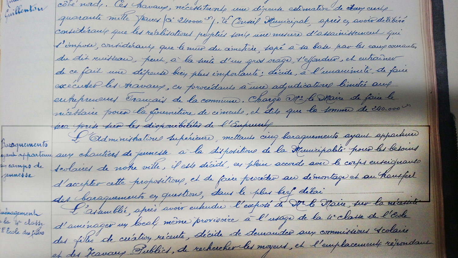 Projet de transfert de baraquements des Chantiers de jeunesse vers l'école