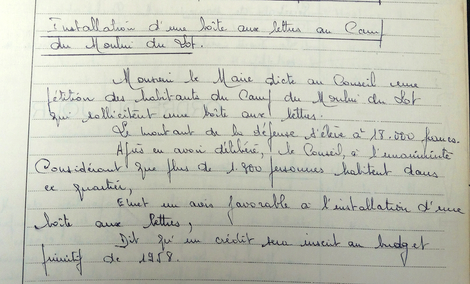 1958 : Extrait du registre des délibérations du Conseil Municipal