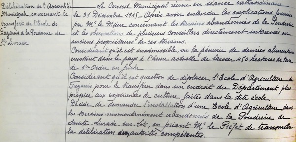 Vœux d'installation d'une école d'agriculture sur les riches terres de Poudrerie, à l'occasion du projet de déplacement de l'école de Fazanis