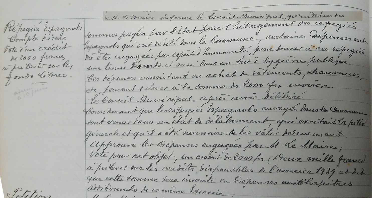 1939 : la municipalité vient en aide aux travailleurs espagnols