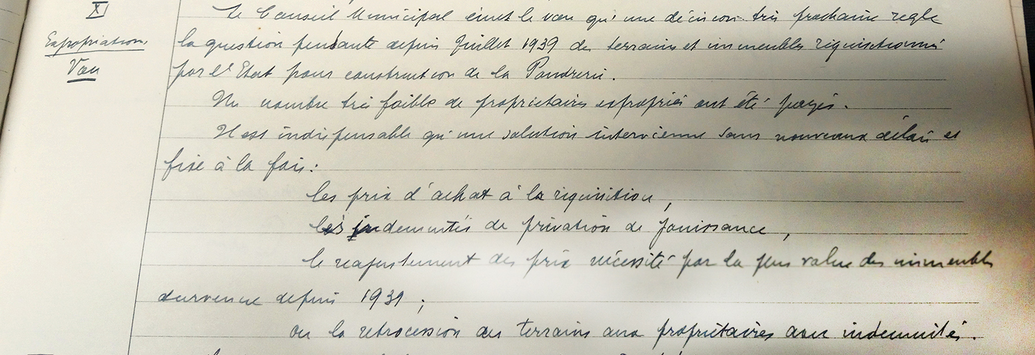 Vœux d'un règlement rapide de la question des indemnités pour réquisitions des terres et bâtiments dans le cadre du projet de poudrerie.