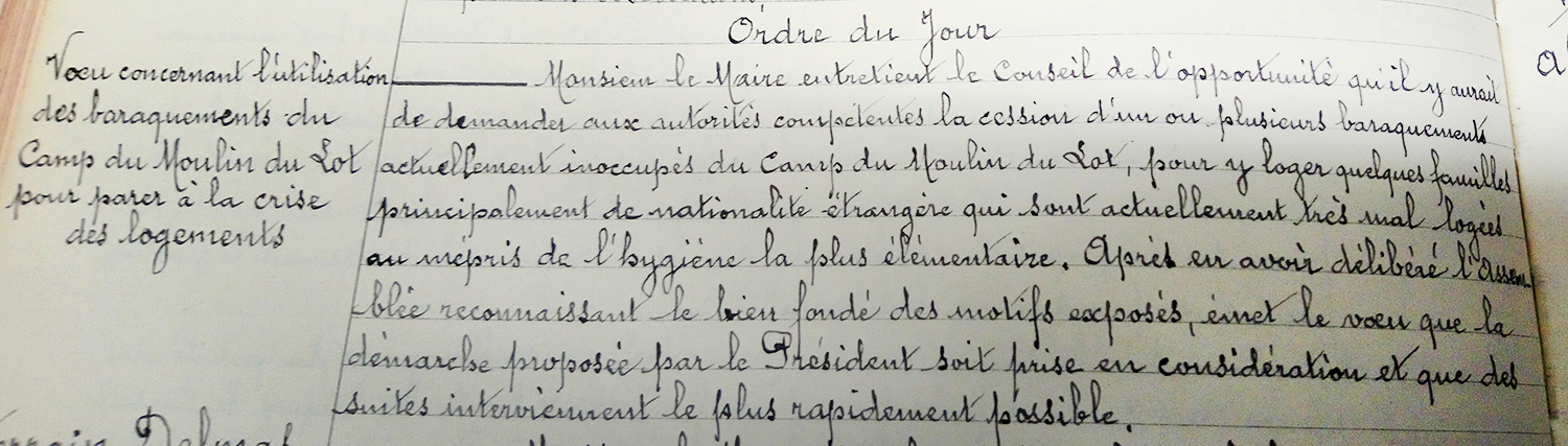 Projet d'utilisation de baraquements du camp du moulin du Lot pour des familles mal logées en ville