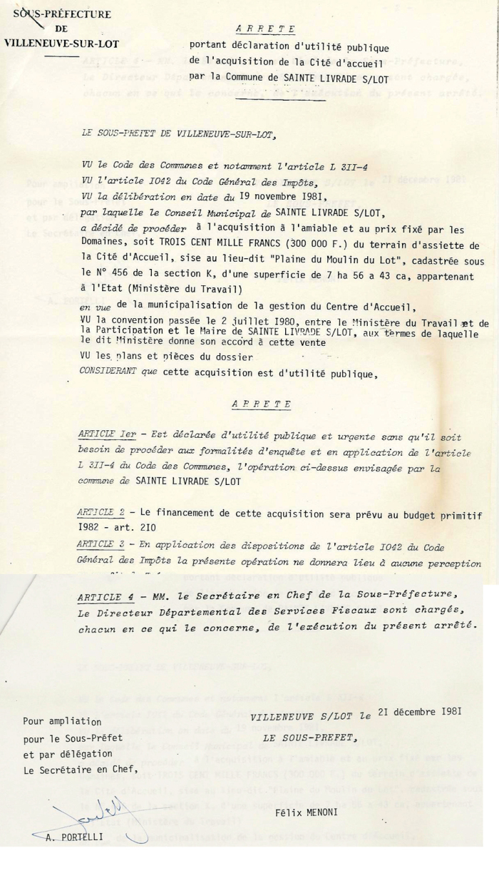 1981 : arrêté d’acquisition du CAFI