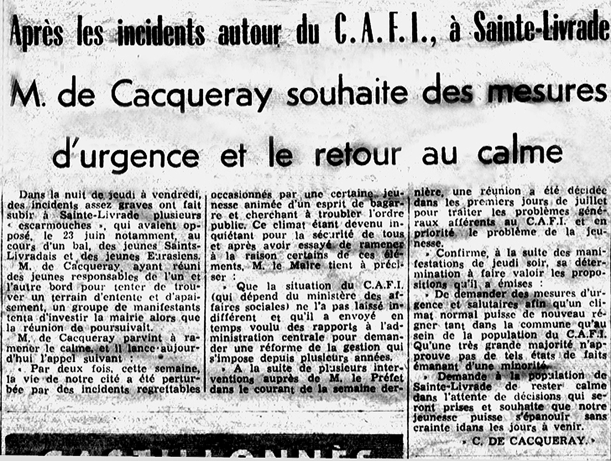 Article de presse : incidents de 1968, intervention du maire