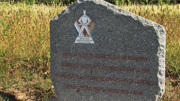 Sur le site de Poudrerie : la stèle en mémoire des travailleurs espagnols