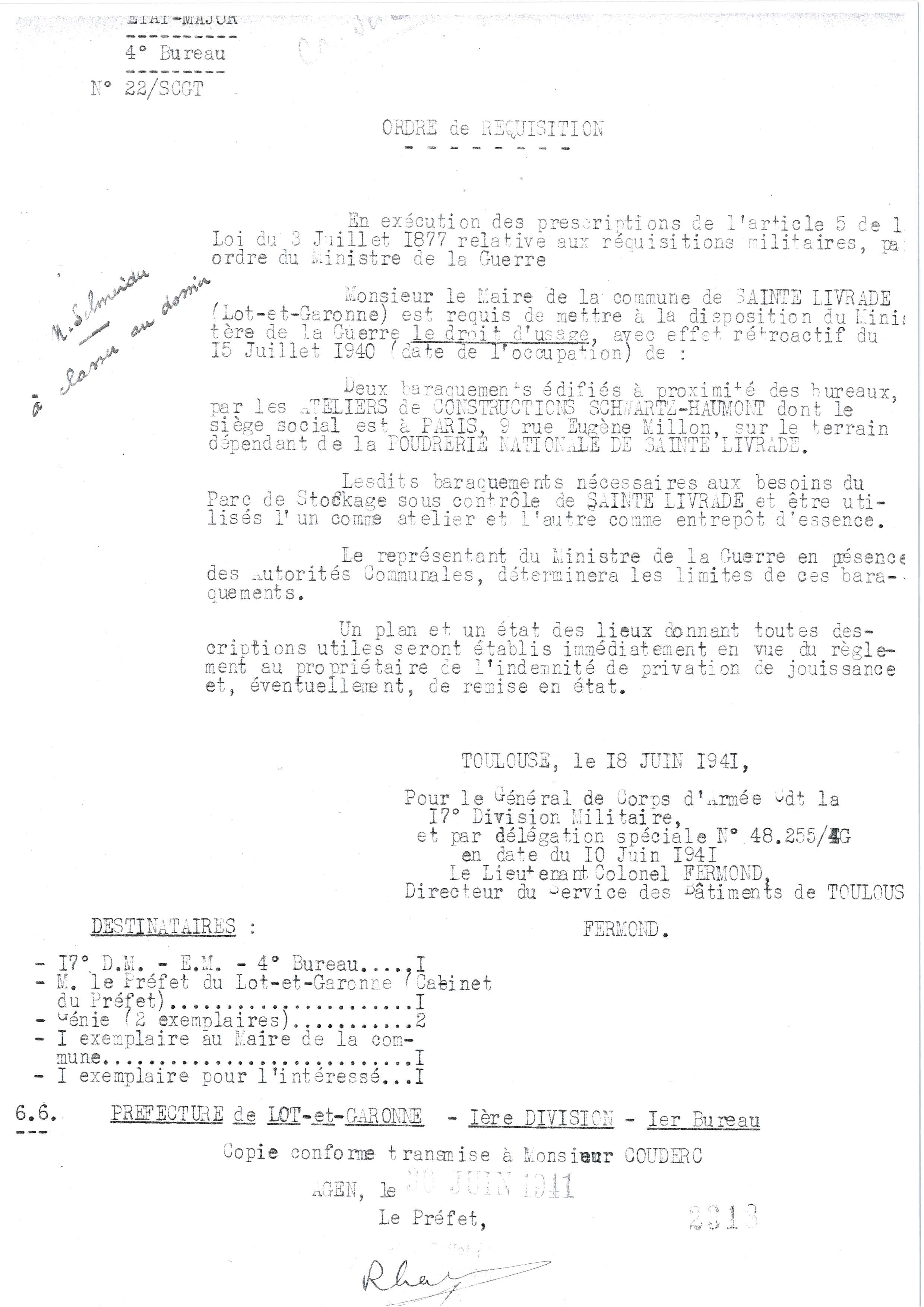 Devenir des récoltes sur les terrains cultivés par les Chantiers de Jeunesse et sur la future destination des terrains de Poudrerie de Sainte-Livrade